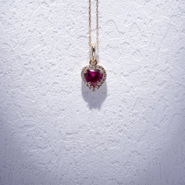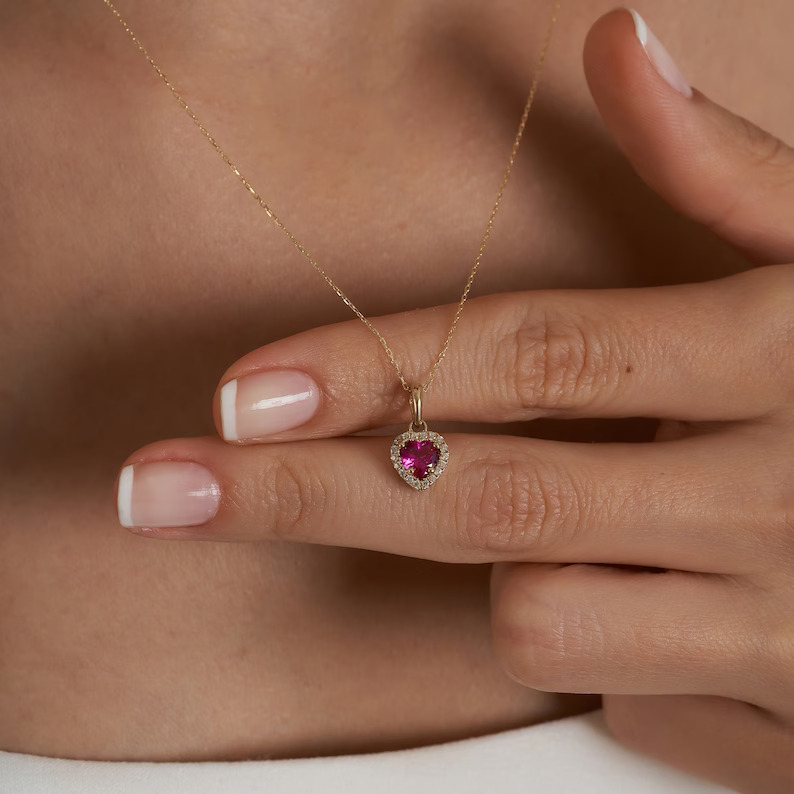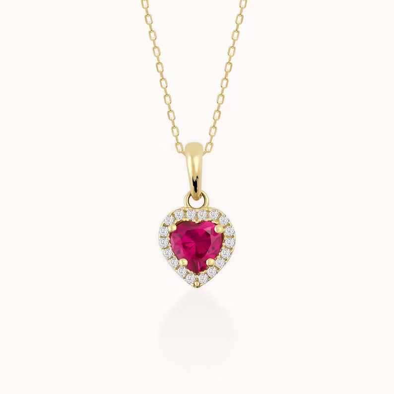 This stunning necklace features a beautiful, genuine ruby heart pendant. The luxurious gold complements the rich red of the ruby, making it a perfect addition to any outfit. A great gift for that special someone in your life